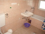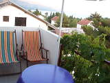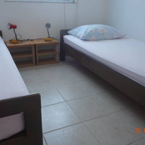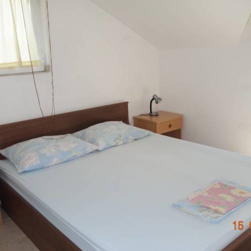 Apartman A4 ima poseban ulaz u trpezariju (13m2) u kojoj se nalazi kuhinja i pomocni lezaj i KLIMA UREĐAJ. Iz trpezarije se ulazi u kupatilo sa lezecom kadom (4m2), istocni balkon (4m2), sjevernu dvokrevetnu spavacu sobu (10 m2) i juznu dvokrevetnu spavacu sobu (10m2) koja ima izlaz na balkon (8m2). Sobe nemaju klioma uređaj. Sa prostranog JUŽNOG balkona pruza se ljepi pogled na more uz ugodnu hladovinu od vinove loze.