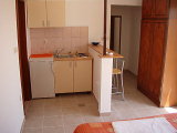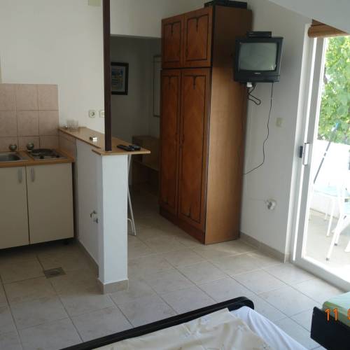 Dvokrevetni studio apartman A5 ima poseban ulaz. Dnevni boravak sa dva lezaja, kombiniran je sa kuhinjom i trpezarijom u istoj prostoriji.