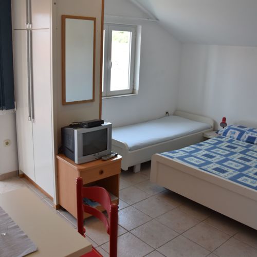 Iz apartmana se izlazi na zapadni balkon 4m2 sa stolom i stolicama.U apartmanu se nalazi i treci lezaj pa je pogodan i za bracni par sa jednim djetetom.